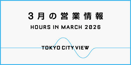 52F / Tokyo City View (Observation Deck)10:00-22:00 (Last Admission: 21:30)Now on View: TENKUU NO ARUKIKATA in TOKYO CITY VIEW